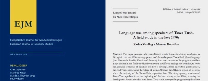 The special issue on Georgia of the European Journal of Minority Studies has appeared. My contribution together with Manana Kobaidze is entitled “Language Use among speakers of Tsova-Tush. A field study in the late 1990s.” Many thanks to the editors for a fruitful collaboration. https://biblioscout.net/journal/ejm/18/1-2 Language Use among […]