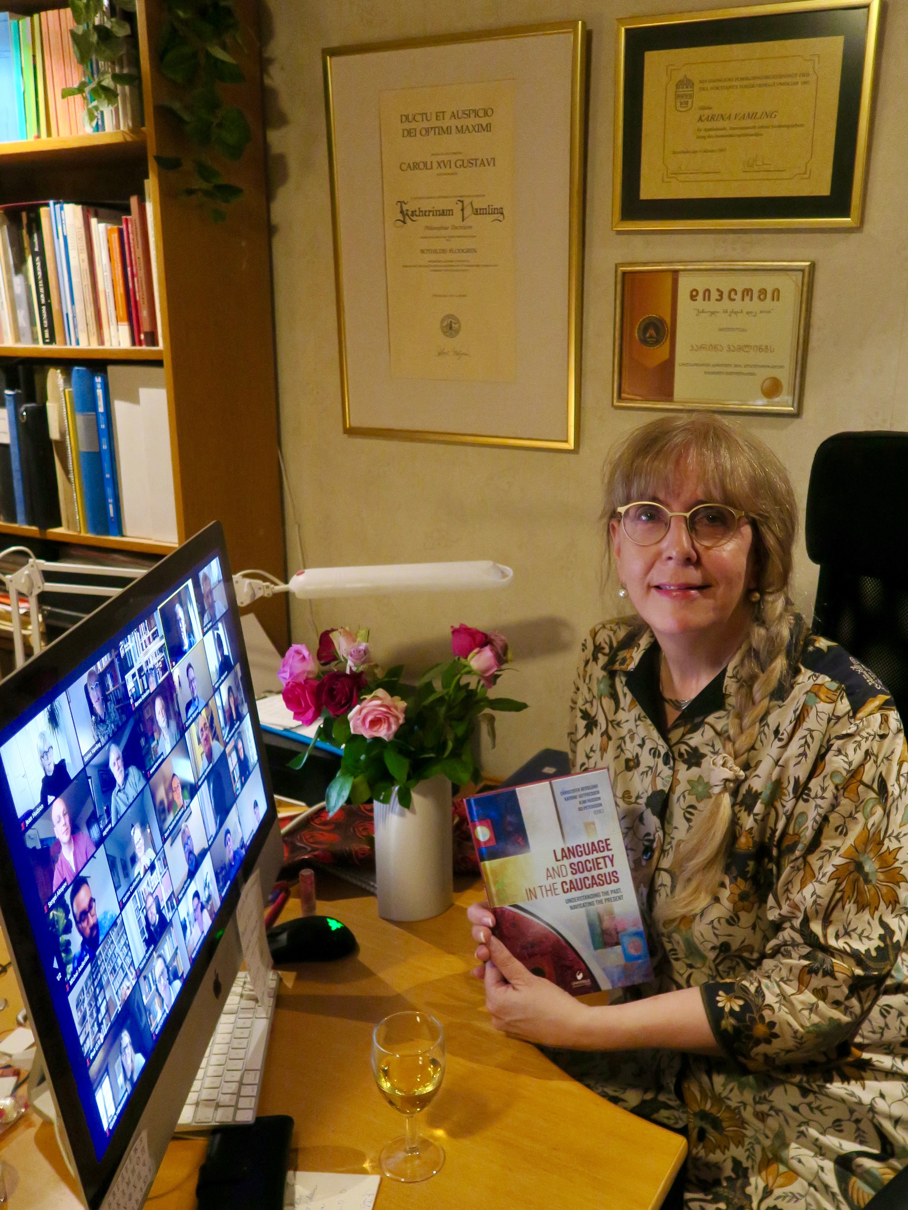 What an unforgettable surprise at our zoom seminar on May 25 – to be presented with a festschrift! Feeling so honored and thankful to my dear colleagues who initiated this and contributed to this exciting book (Read Festschrift: Language and Society in the Caucasus) (Universus Academic Press).