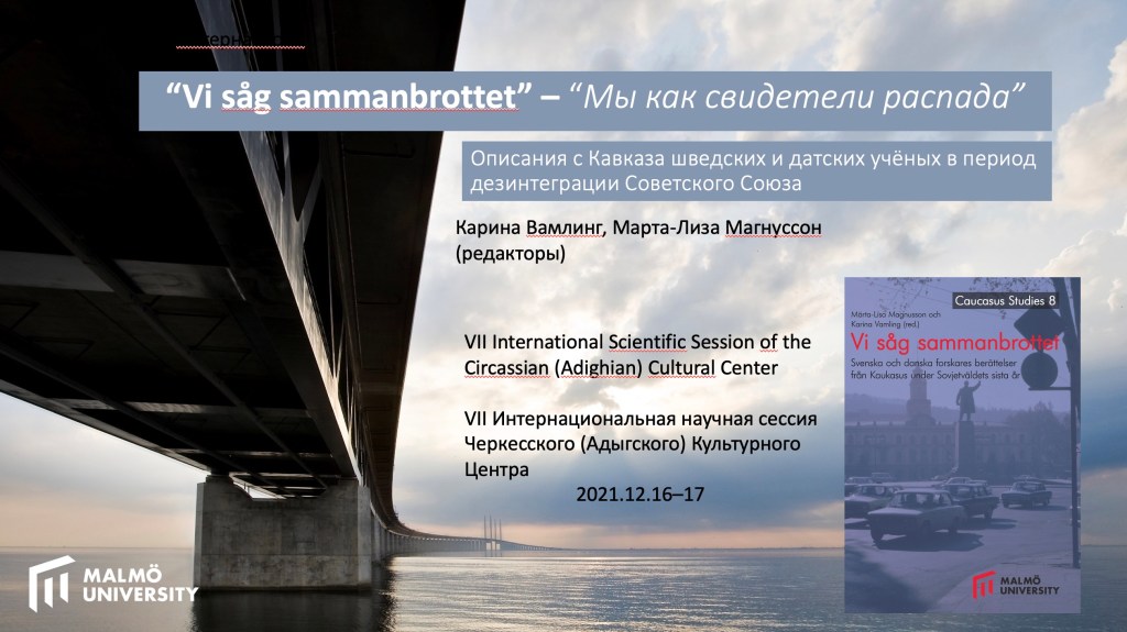 My contribution to the conference, together with Dr. Märta-Lisa Magnusson (to the left, below), was a joint presentation of our co-edited book We witnessed the break-up – Six researchers on the final years of the USSR seen from the Caucasus (in Swedish and Danish). I presented one of my two chapters, where I wrote about my fieldtrip to Majkop in 1988.