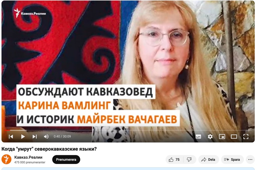Представляю вашему вниманию очередной выпуск подкаста, где со мной любезно согласилась поговорить о проблемах языков среди малочисленных народов Северного Кавказа мадам Карина Вамлинг (Karina Vamling), профессор по кавказоведению факультета культуры и общества в шведском университете Мальмё, доктор филологических наук по общей лингвистике при Лундском университете в Швеции, одна из основательниц и директоров научного центра RUCARR (Региональные исследования России, Украины и Кавказа).