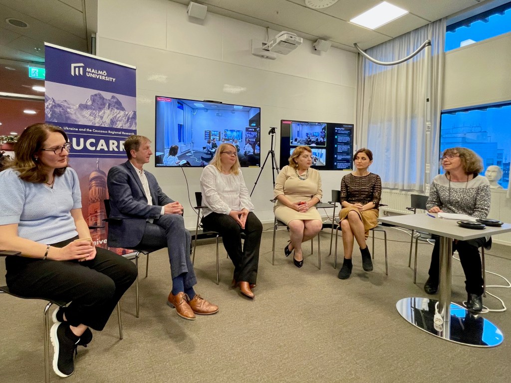 It was a great pleasure for me to host the RUCARR Symposium “Language in Conflict and War – Ukraine, Caucasus, Russia”, on November 6-7 together with Prof. Bo Petersson and Dr. Manana Kobaidze. The event was conducted both on campus and online with papers on languages in conflict in Ukraine, Georgia, the North Caucasus and Central Asia. See Abstracts and photos from the event. Photo from the concluding roundtable discussion with Lidia Zhigunova, Andrey Makarychev, Nadiya Kiss, Mariam Manjgaladze, and Maka Tetradze. Moderator: Prof. Barbara Thörnqvist-Plewa.