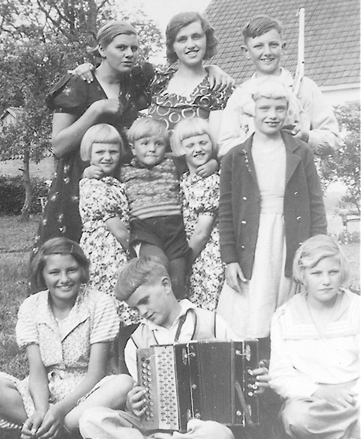 On one of the first days of the year, my beloved aunt Ruth left us, and shortly after this, also my uncle’s wife, Gerd. Aunt Ruth and Aunt Gerd were the last representatives of my mother’s generation of thirteen brothers and sisters. Most of the siblings are gathered in the photo to the right. The year is 1936. Photo: Ruth is the central twin girl, carrying the youngest brother, who would marry my aunt Gerd. It’s my mother’s tenth birthday; she is standing to the right in a dark jacket.