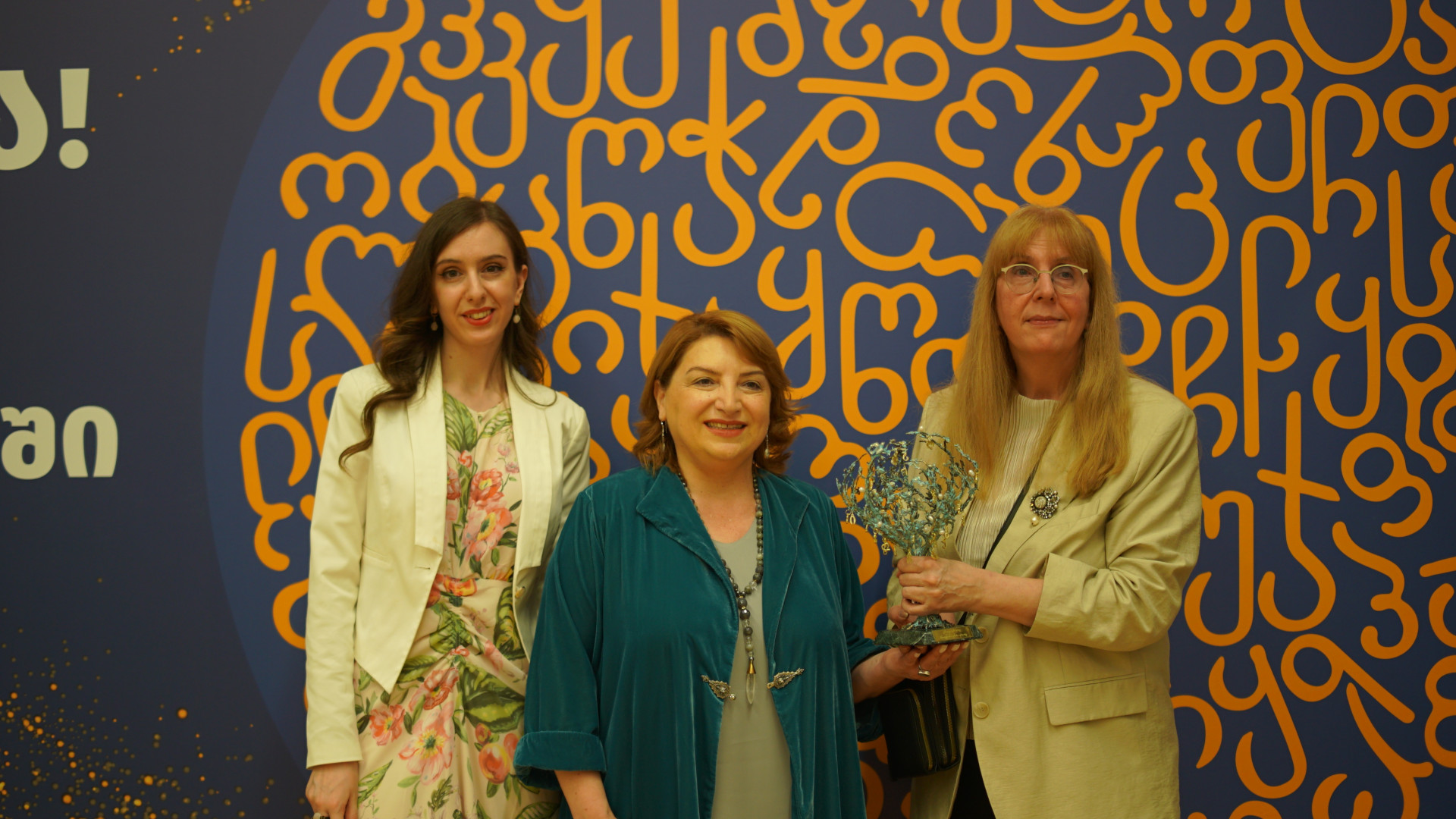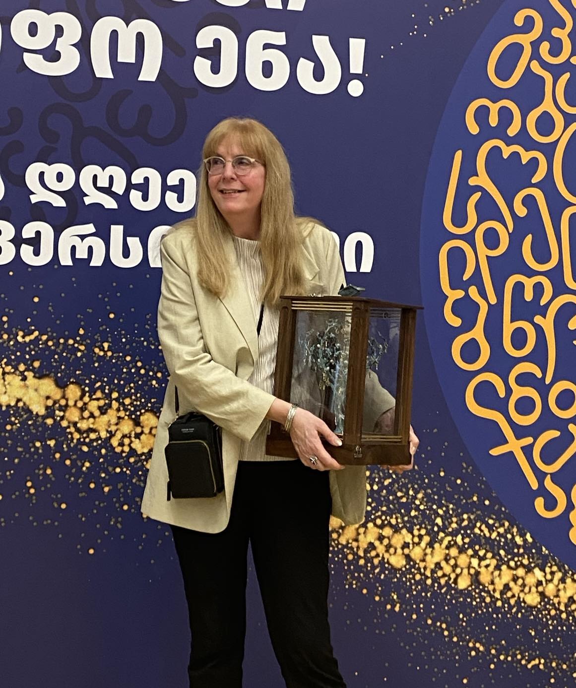 It was a great honor for me to receive an award from Caucasus University (Tbilisi) for my contributions to the study of the Georgian language. The festive ceremony took place on April 15, and the prize was awarded by Kakhaber Shengelia, Rector of Caucasus University, . I’m most grateful for this recognition of my work. My special thanks to Professor Mariam Manjgaladze, who was the initiator and organizer of the impressive event on the occasion of the Day of the Georgian Language. The prize itself is a beautiful bronze tree with leaves of Georgian letters (see below).