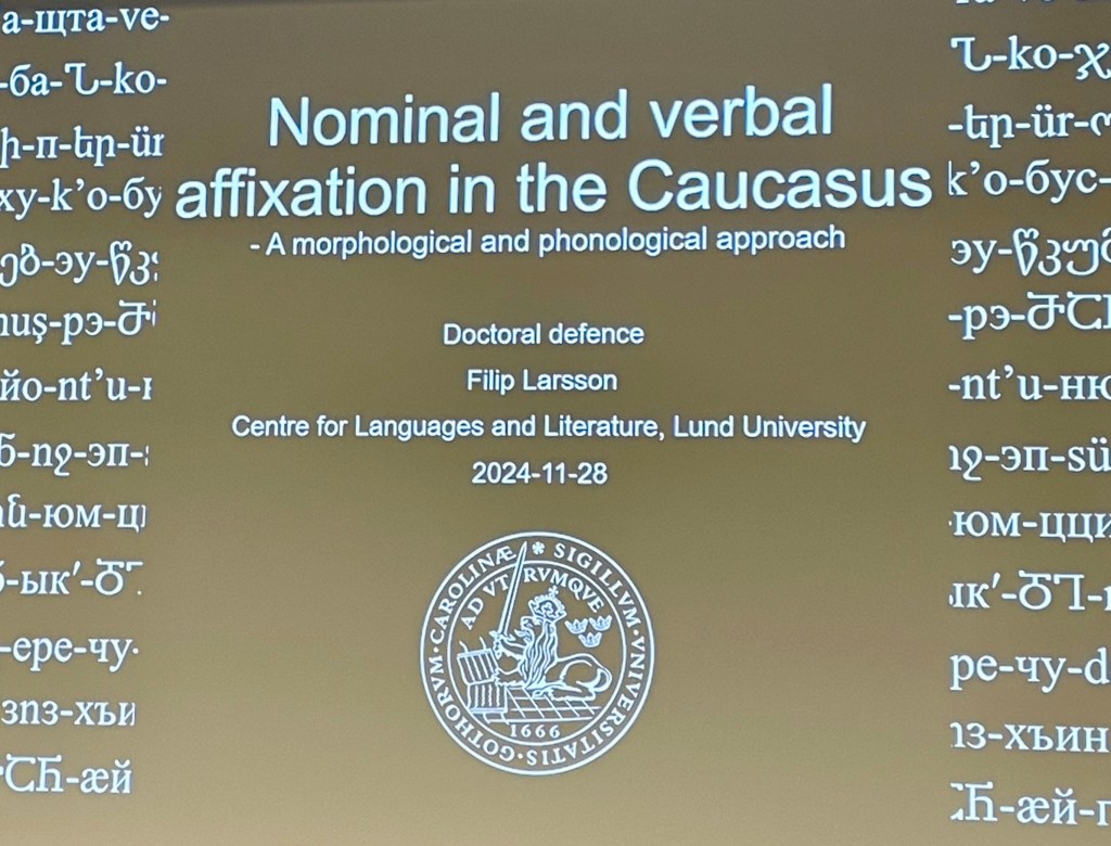 I have much enjoyed being part of the team of supervisors of Filip Larsson’s highly interesting and creative PhD thesis “Nominal and Verbal Affixation in the Caucasus” in General Linguistics, Lund University. Opponent was Prof. Diana Forker, Friedrich Schiller University Jena. And what a party in the evening…. Georgian on my mind – in new version.