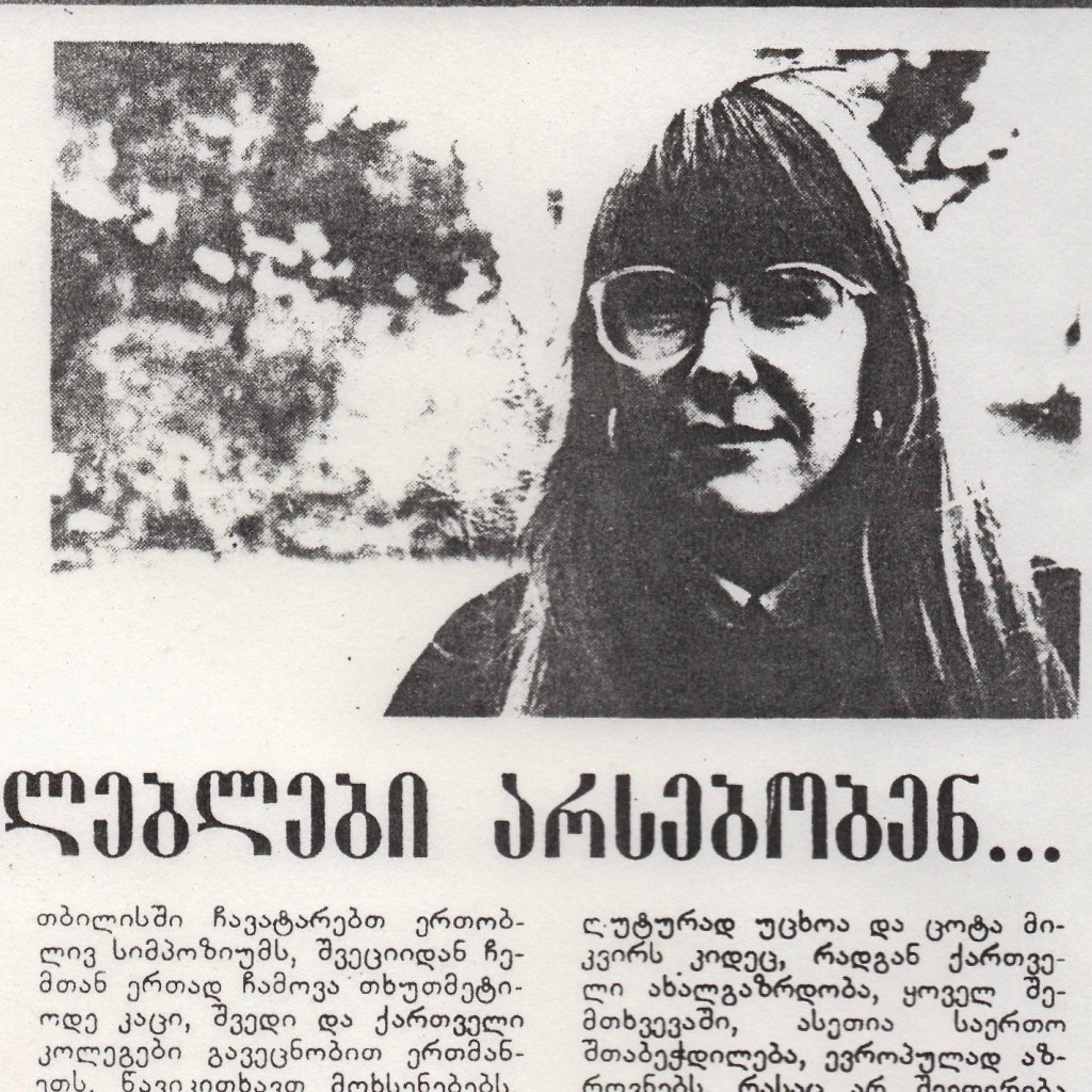 Chveni s’umari – shvedi kartvelologi [Our guest – a Swedish kartvelogist], Lit’erat’uruli Sakartvelo. January 18, 1989 – read it
